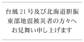 平成30年台風21号及び北海道胆振東部地震により被災された方々に心よりお見舞い申し上げます。